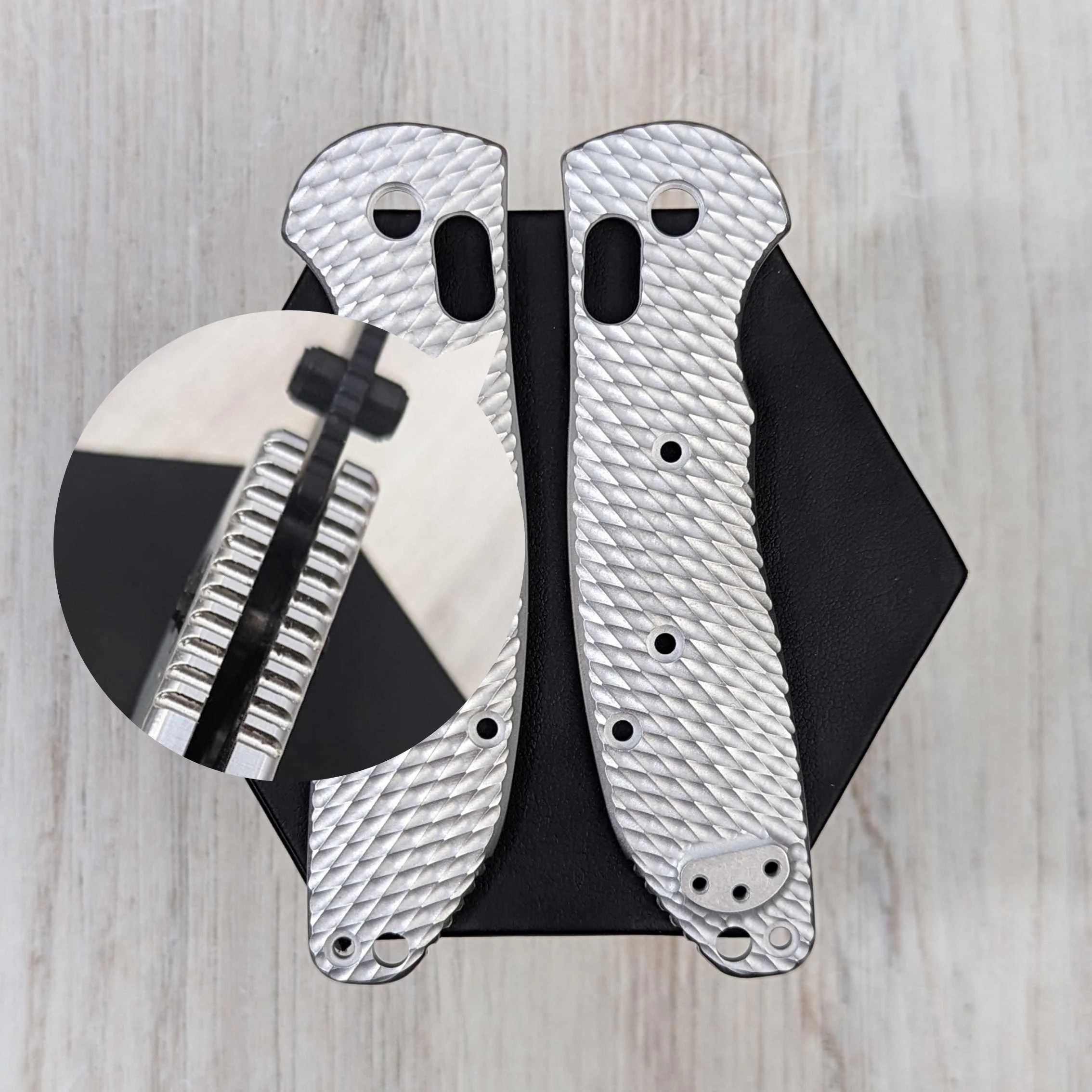 Available in two options...our STOCKY GOAT Aluminum Scales - our most "stock" option - with that contoured feel you're accustomed to but with that OG style, or access our pineapple and expanded textures on our FLAT GOAT option that is a flat-styled scale! Both models are the same thickness and use stock hardware.